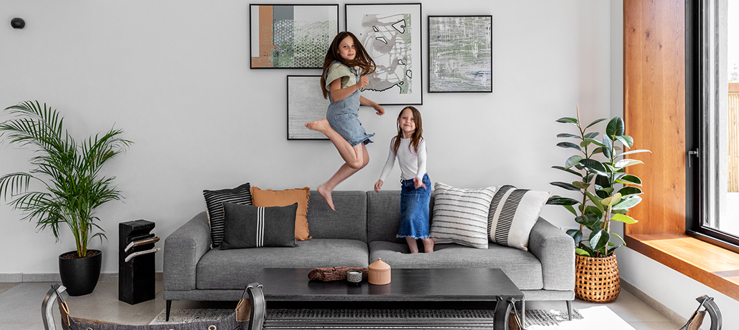 בבית שבו הסלון מוקדש כולו לאירוח ושיחה ללא טלוויזיה, חדר המשפחה קיבל מקום של כבוד והורחב משמעותית כדי להכיל את כל ששת הנפשות בנוחות. לב המרחב הוא ספה מודולרית רב תכליתית, המאפשרת שינוי של מצבי הישיבה והשכיבה בהתאם לצורך, החל מרביצה משותפת ועד לאירוח ׳מסיבות פיג'מות׳ של הילדים.